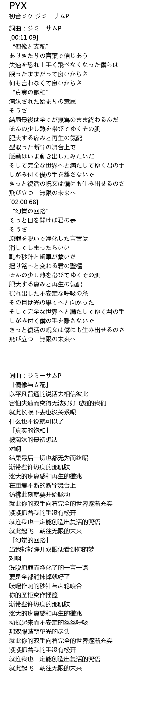 | [00:00.00] | 詞曲:ジミーサムP |