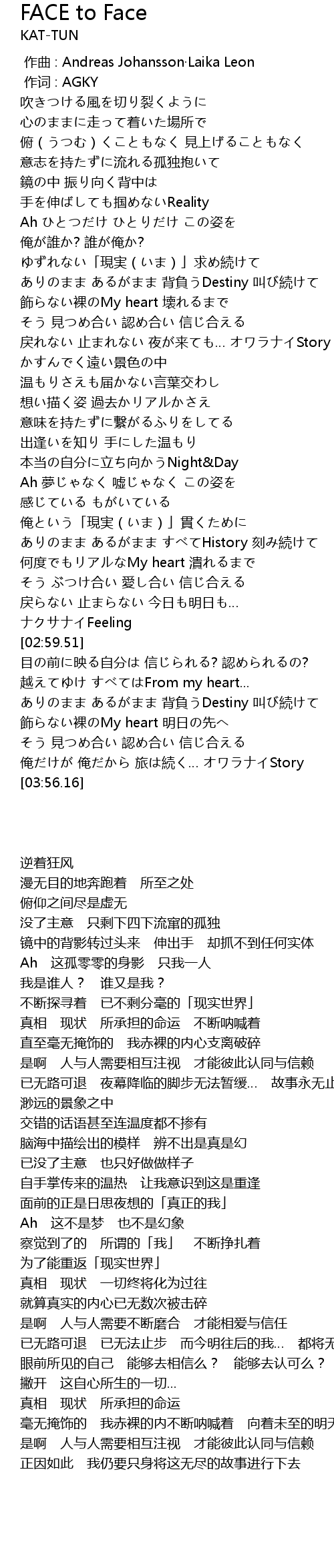 | [03:12.24] | 目の前に映る自分は 信じられる? 認められるの? |