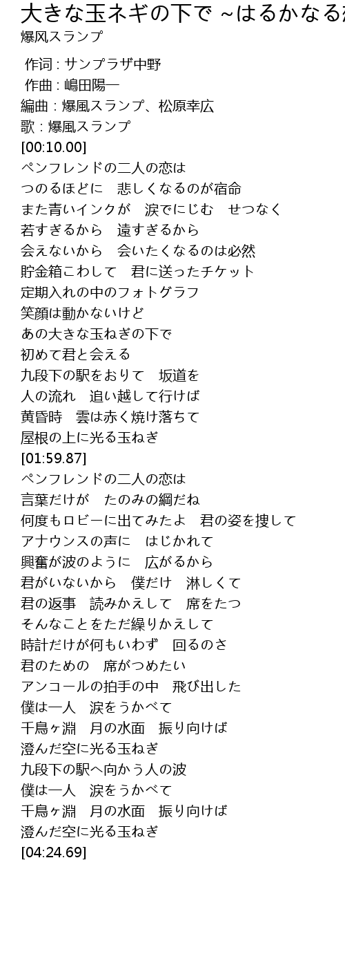 | [00:06.00] | 編曲:爆風スランプ、松原幸広 |