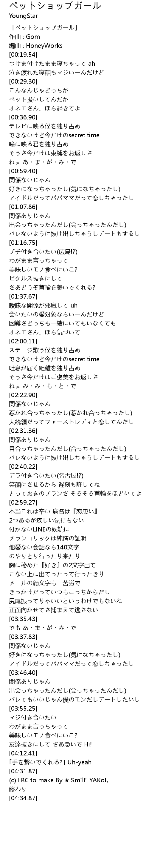 | [00:00.54] | 「ペットショップガール」 |