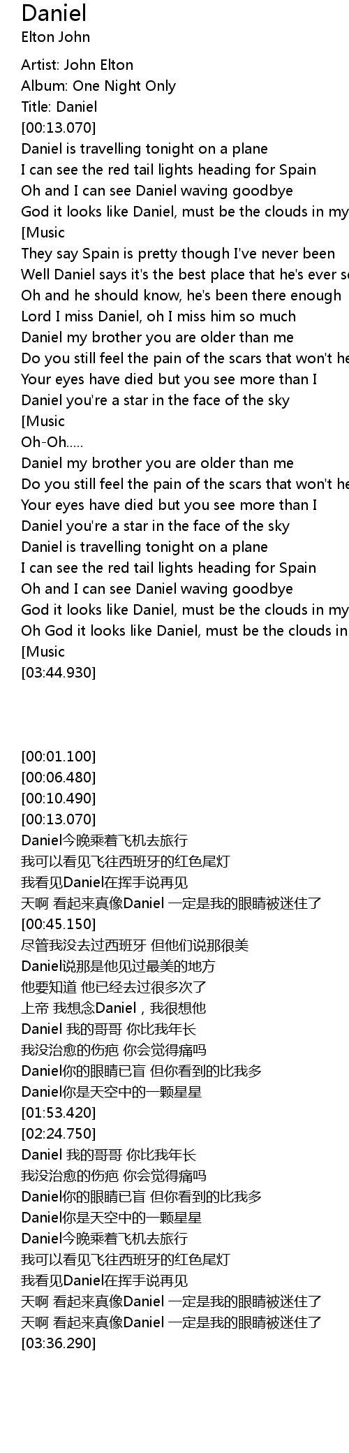 Oh God it looks like Daniel, must be the clouds in my eyes |