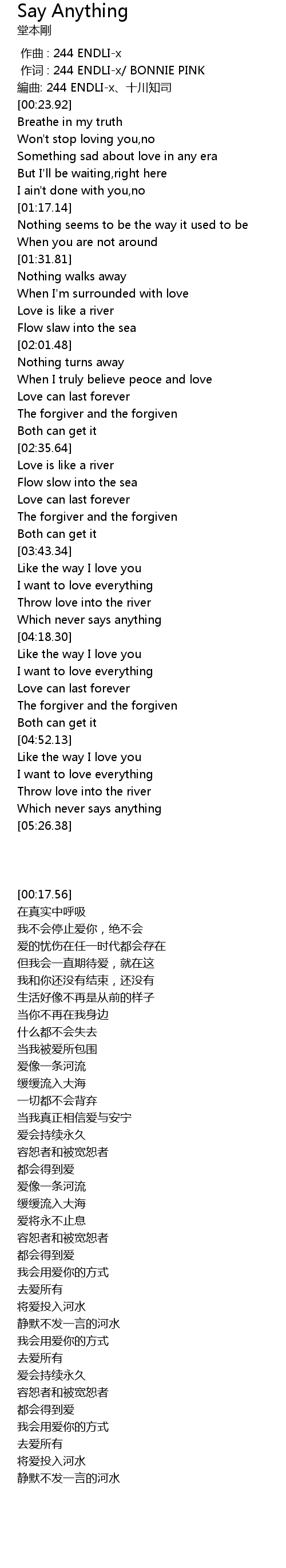 | [05:17.68] | Throw love into the river |