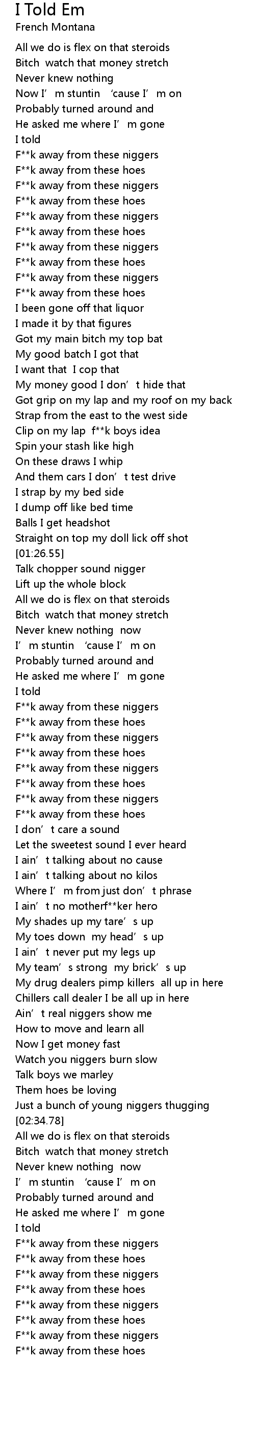 | [02:32.63] | Just a bunch of young niggers thugging |