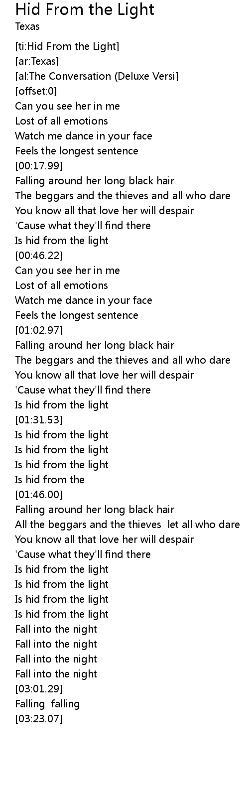 [ti:Hid From the Light] |