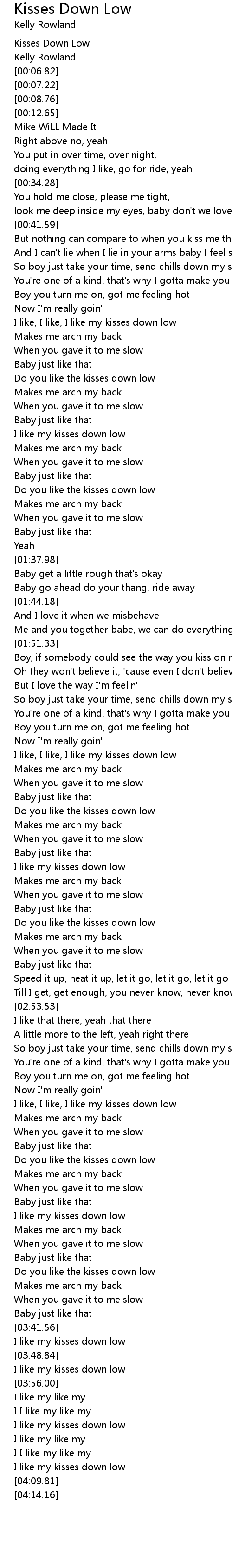 I like my kisses down low |