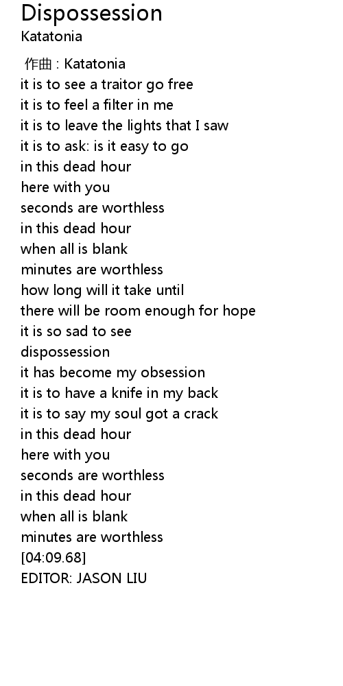 | [00:00.00] | 作曲 : Katatonia |