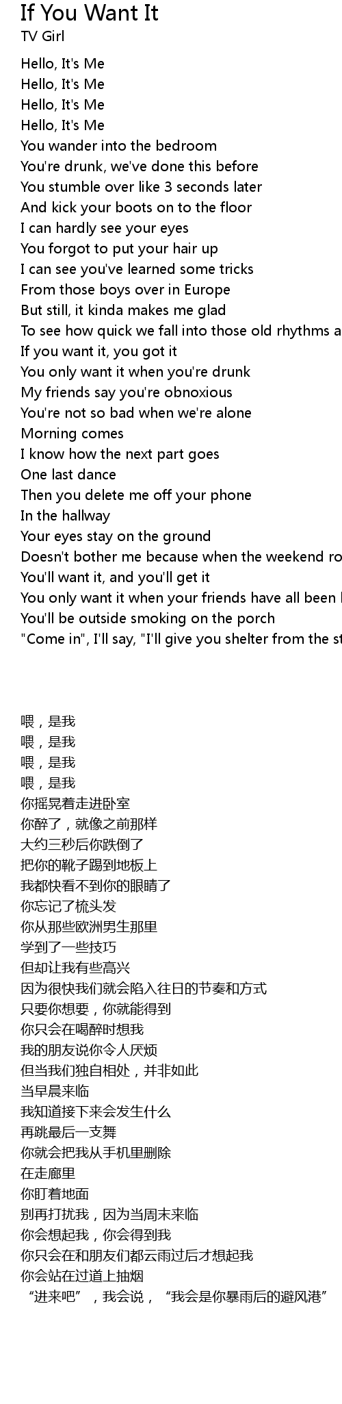 You only want it when you're drunk |