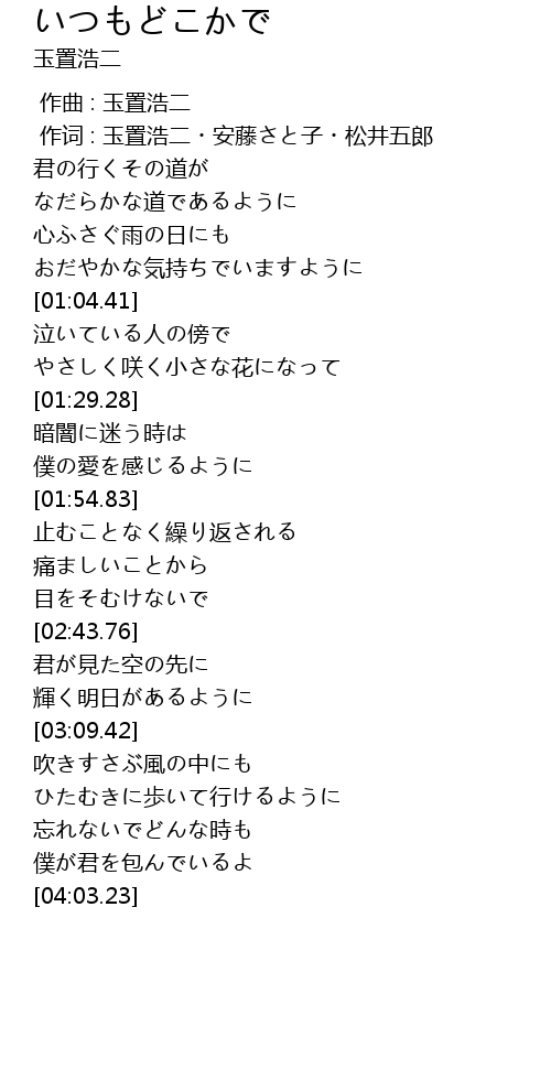| [00:00.00] | 作曲 : 玉置浩二 |