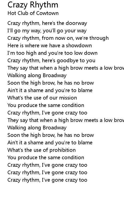 Crazy rhythm, here's the doorway |