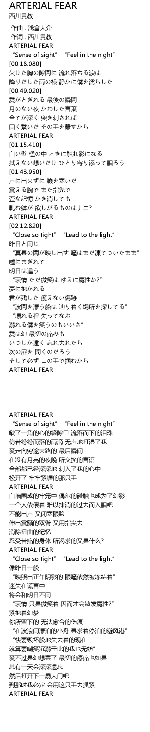 | [01:12.750] | ARTERIAL FEAR |