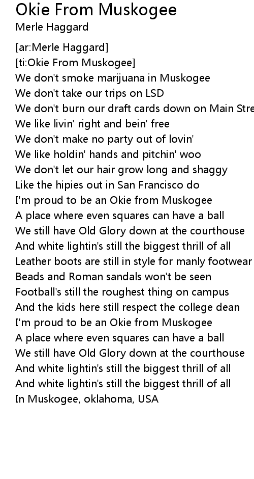 [ti:Okie From Muskogee] |