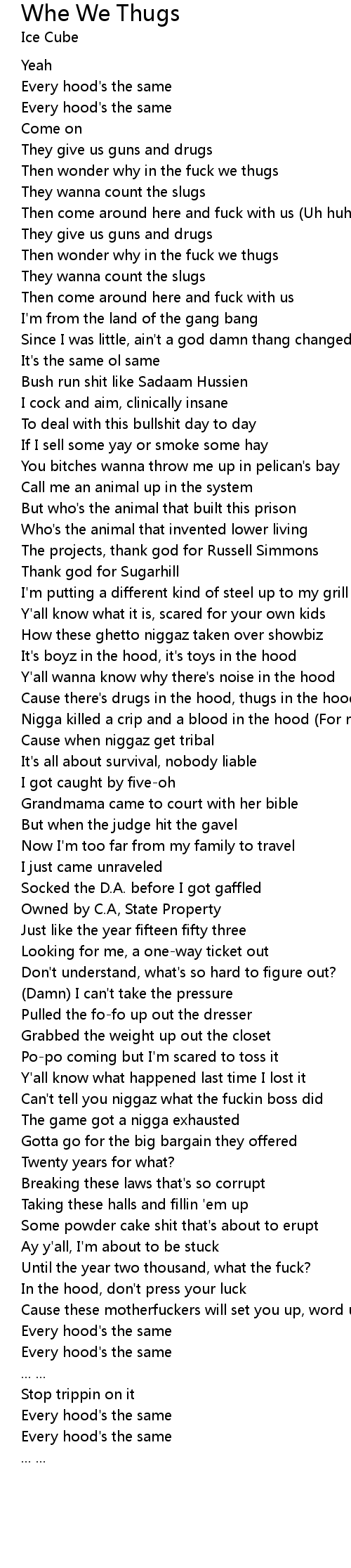 | Then wonder why in the fuck we thugs | |