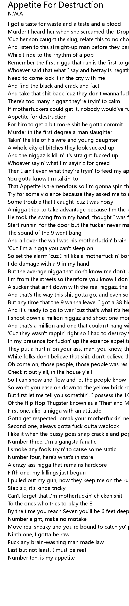 | Then I ain't even what they're tryin' to feed my appetite for destruction | |