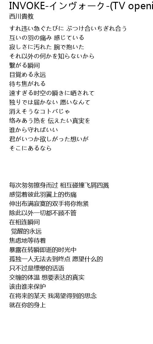 | Song | INVOKE-インヴォーク-(TV opening version) |