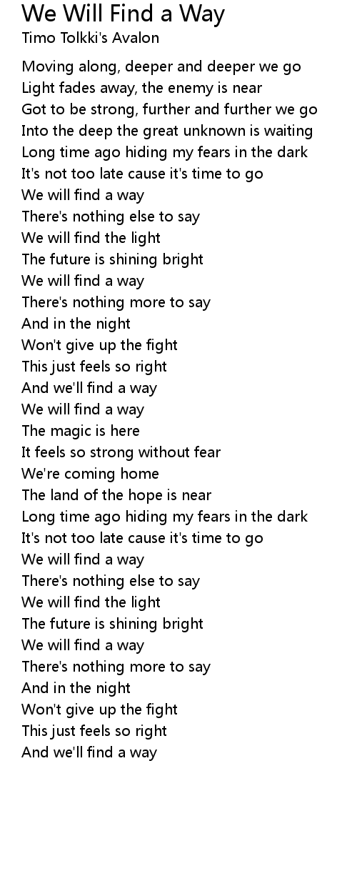 And we'll find a way |