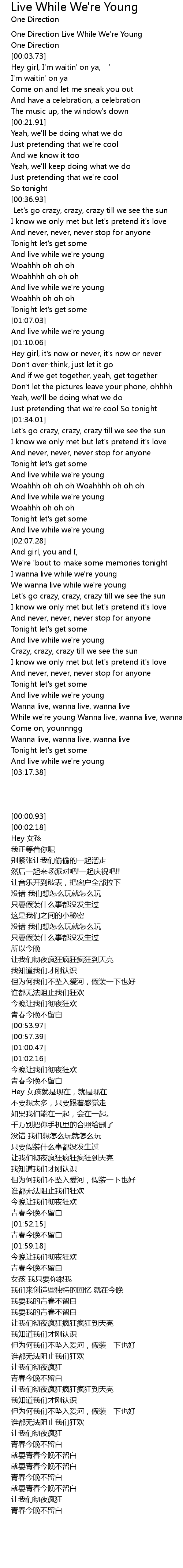 | [00:00.93] | One Direction Live While We're Young |