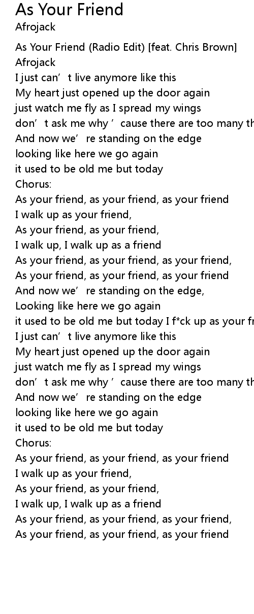 | As your friend, as your friend, as your friend |
