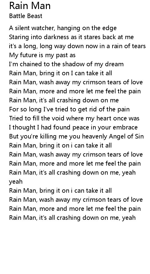 Rain Man, more and more let me feel the pain |