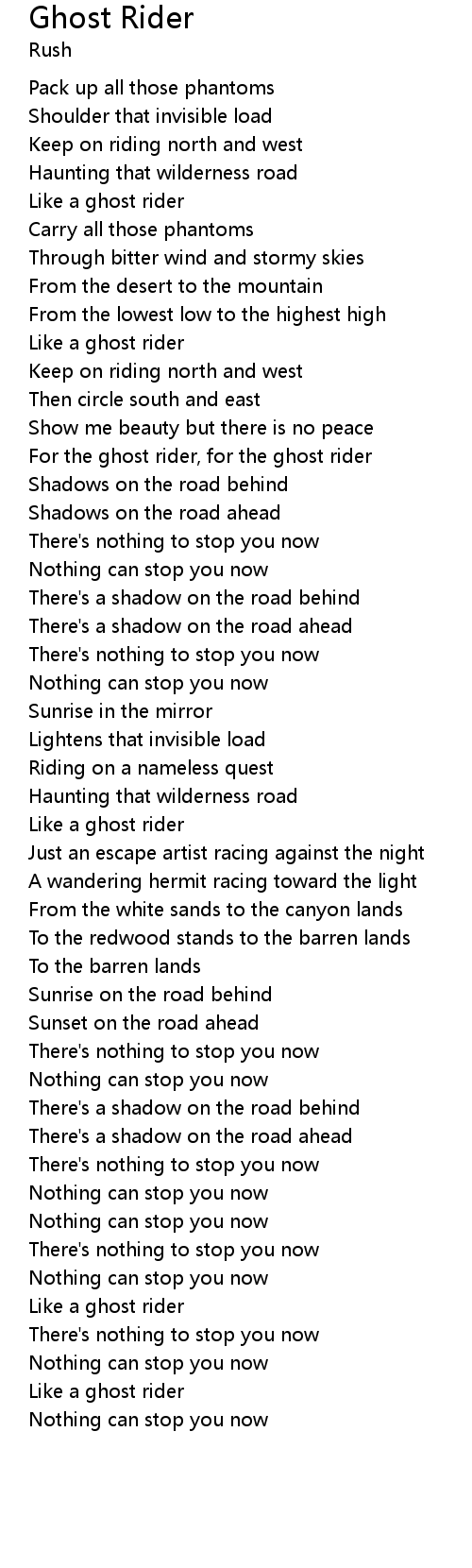 For the ghost rider, for the ghost rider |