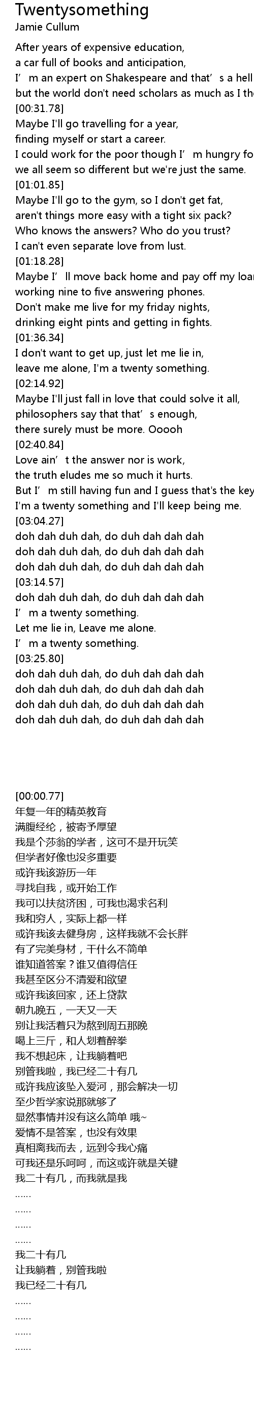| [02:59.91] | I' m a twenty something and I' ll keep being me. |