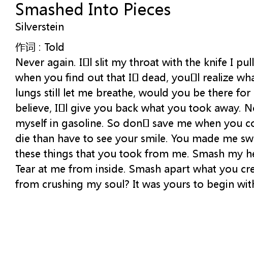 | Song | Smashed Into Pieces |