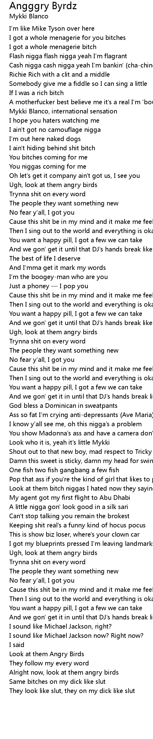 | [03:57.85] | Alright now, look at them angry birds |