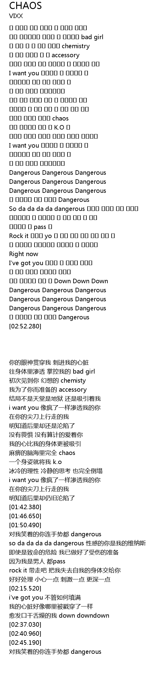 | [01:50.490] | Dangerous Dangerous Dangerous |