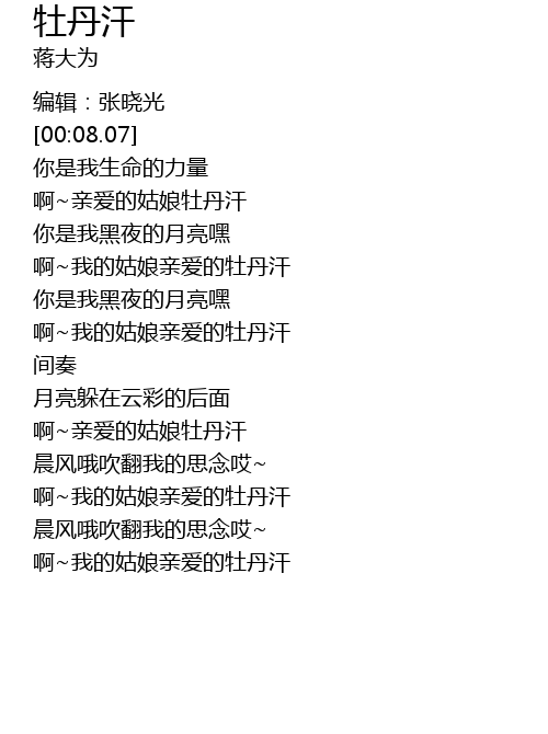 | [00:50.77] | a wǒ de gū niáng qīn ài de mǔ dān hàn |