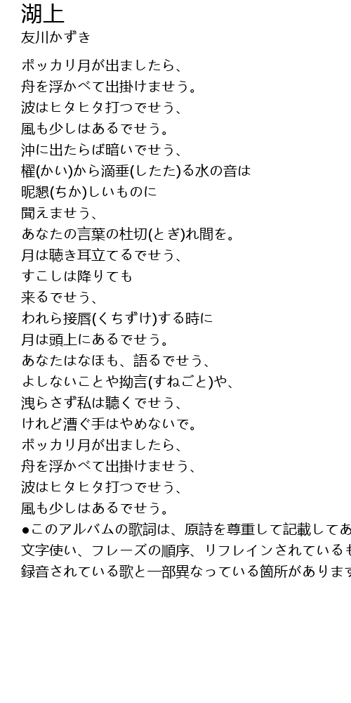 | Song | 湖上 |