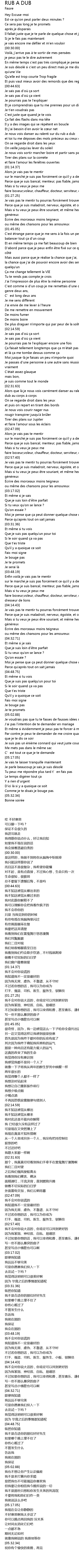 | [02:32.18] | Alors que là je nous vois carré ment danser au ralenti sur du rub a dub au corps à corps |