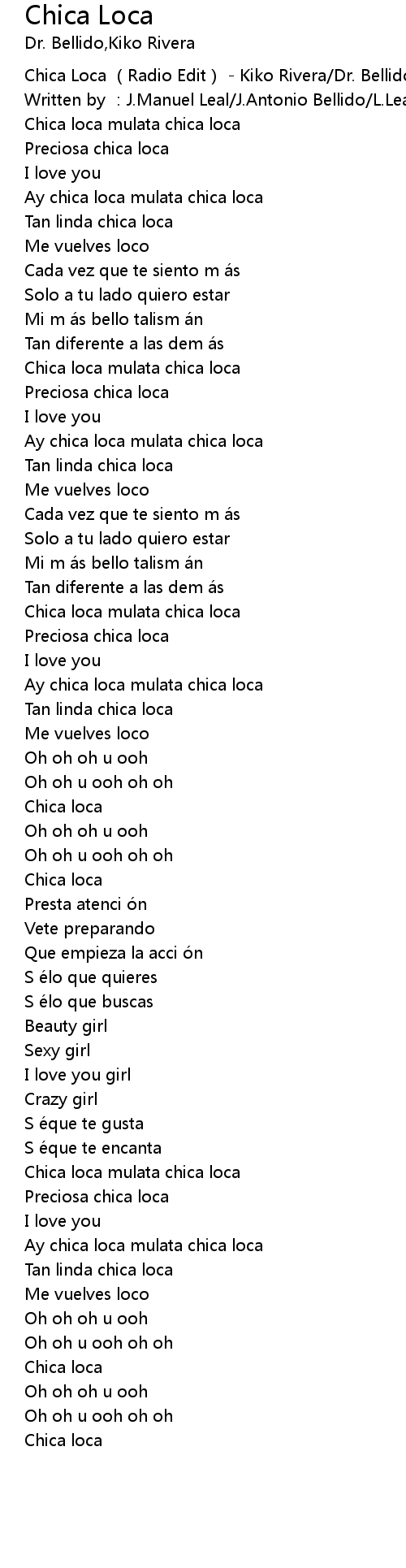 | [00:00.658] | Chica Loca Radio Edit Kiko Rivera Dr. Bellido |