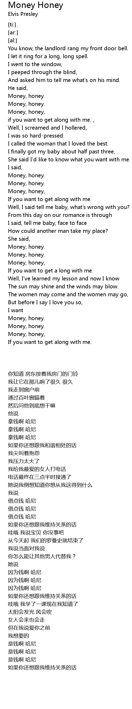 | [00:57.37] | Money, honey, |