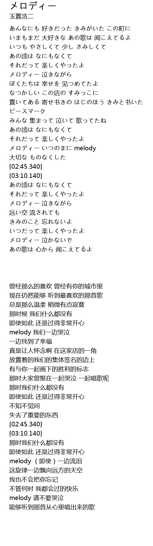 | [03:30.870] | メロディー 泣きながら |