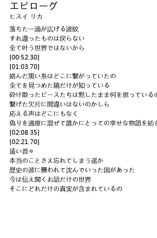| [01:40.89] | 繋げた欠片に間違いはないのかしら |