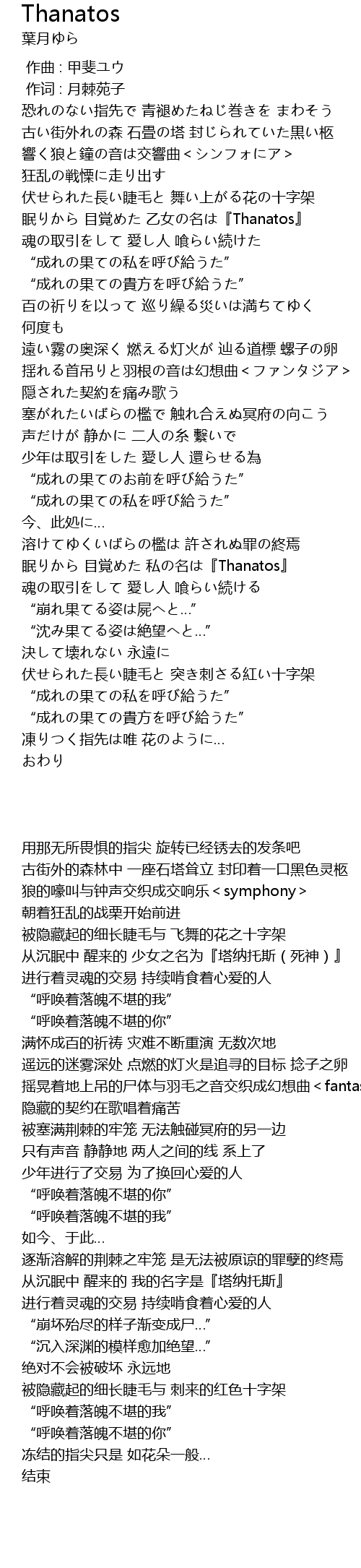 | [00:58.50] | 眠りから 目覚めた 乙女の名は『Thanatos』 |