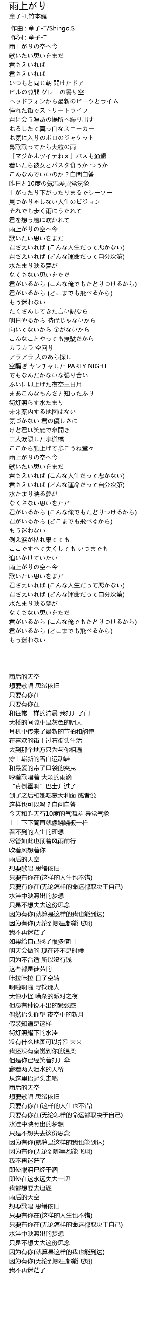 | [00:38.84] | 鼻歌歌ってたら大粒の雨 |