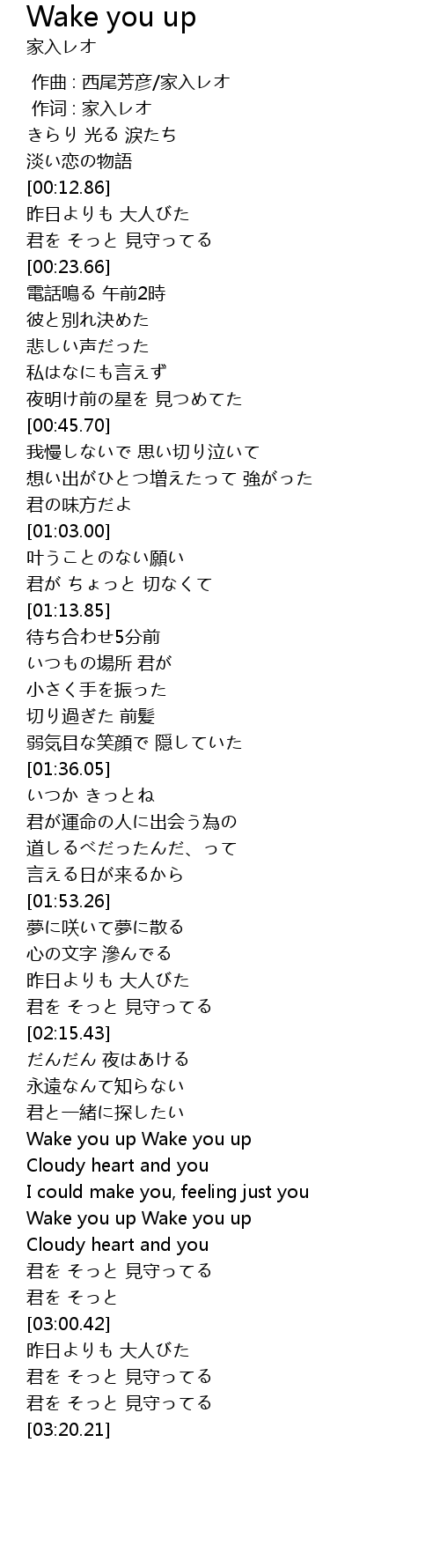 | [00:00.00] | 作曲 : 西尾芳彦/家入レオ |