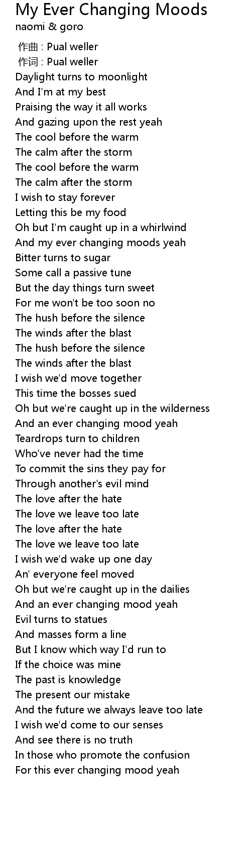 | [00:49.89] | And my ever changing moods yeah |