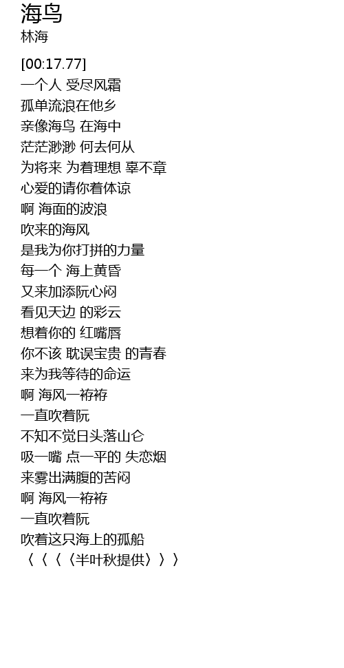 | [02:17.04] | 啊 海风一袸袸 |