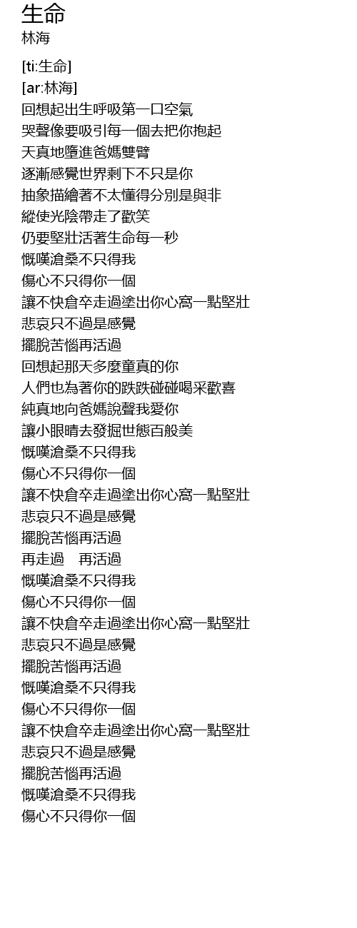 | [00:46.689] | 仍要堅壯活著生命每一秒 |