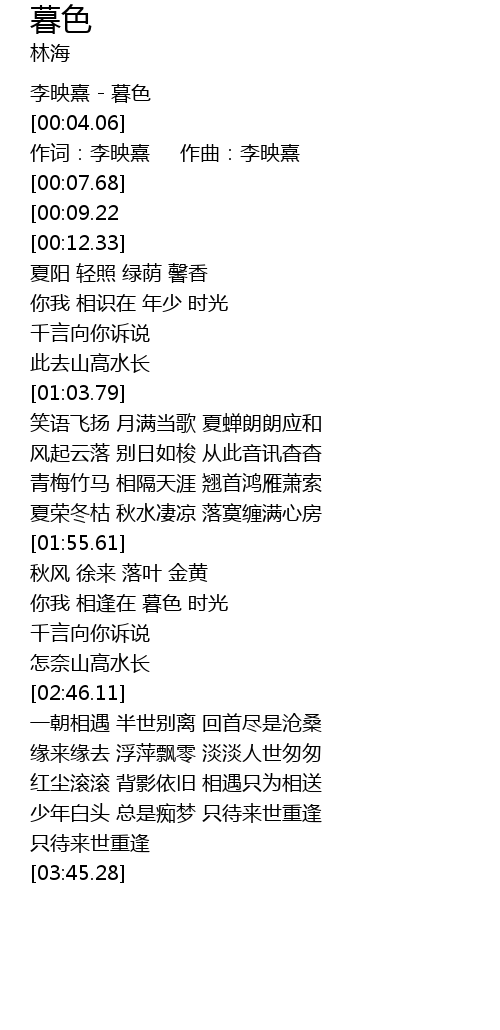 | [00:01.12] | 李映熹 - 暮色 |