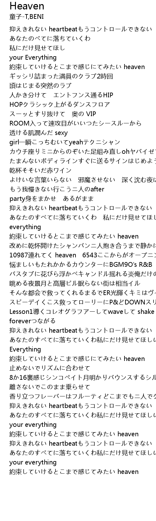 | [00:34.991] | 約束していけるとこまで感じにてみたい heaven |