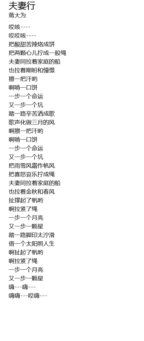 | [00:30.100] | 夫妻同拉着家庭的船 |