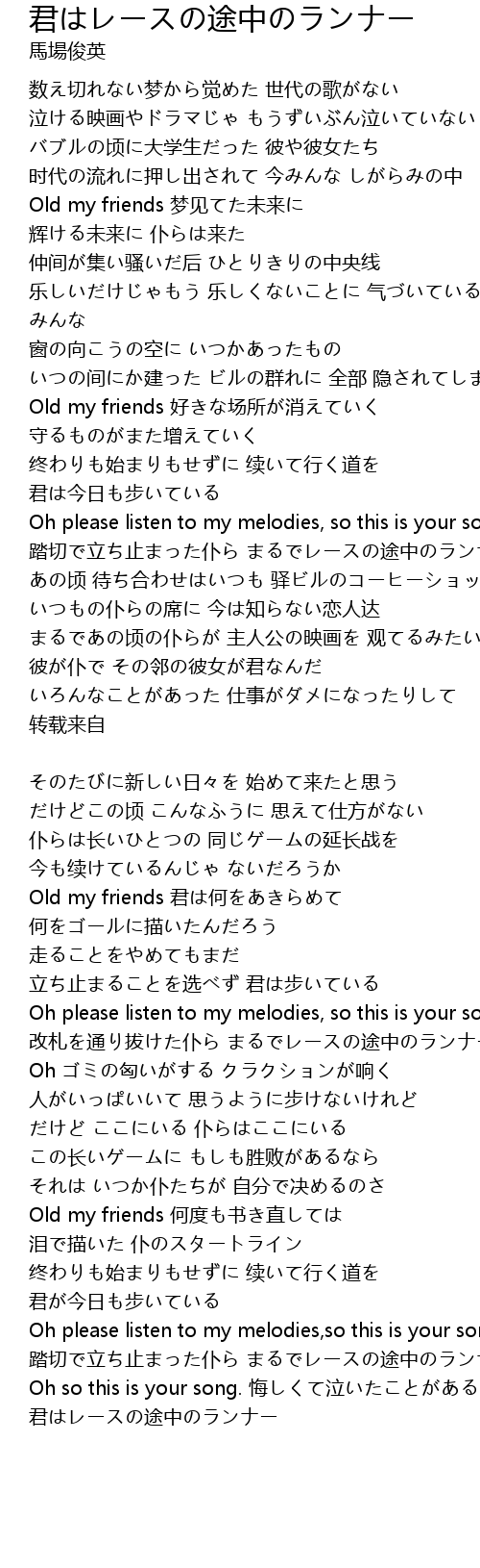 | 君はレースの途中のランナー |