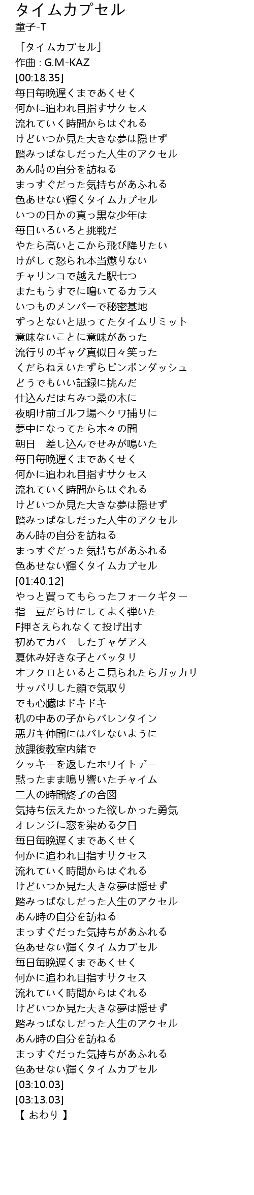 | [00:01.35] | 「タイムカプセル」 |