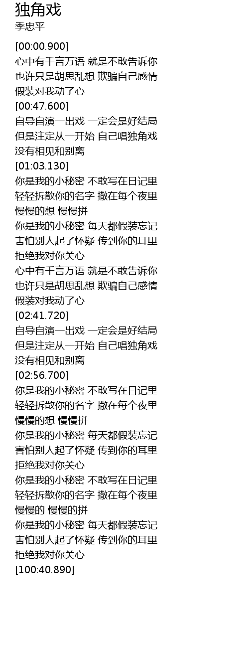 | [00:55.550] | 但是注定从一开始 自己唱独角戏 |