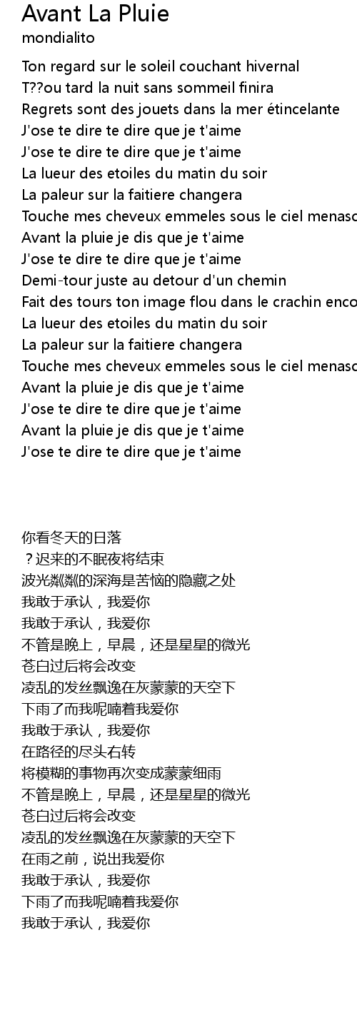 | [01:50.06] | Avant la pluie je dis que je t' aime |