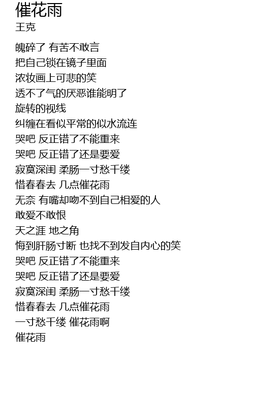 | [02:40.300] | xī chūn chūn qù jǐ diǎn cuī huā yǔ |