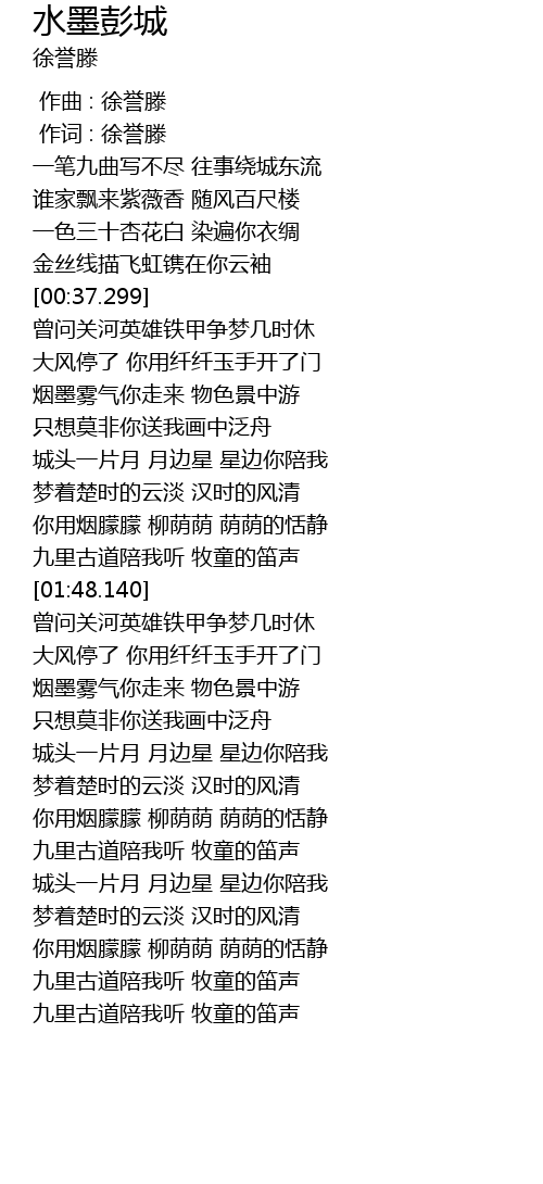 | [02:37.640] | 九里古道陪我听 牧童的笛声 |