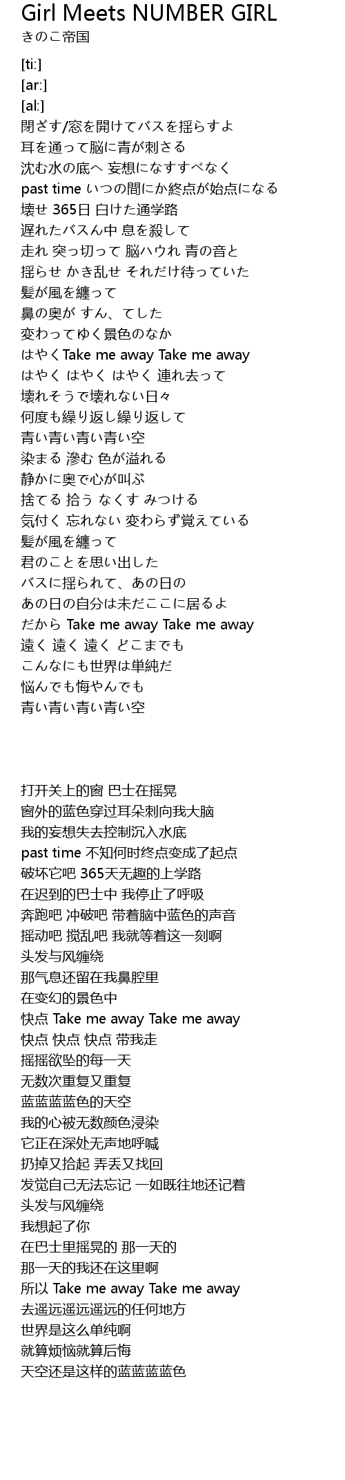 | [03:32.38] | Take me away Take me away |